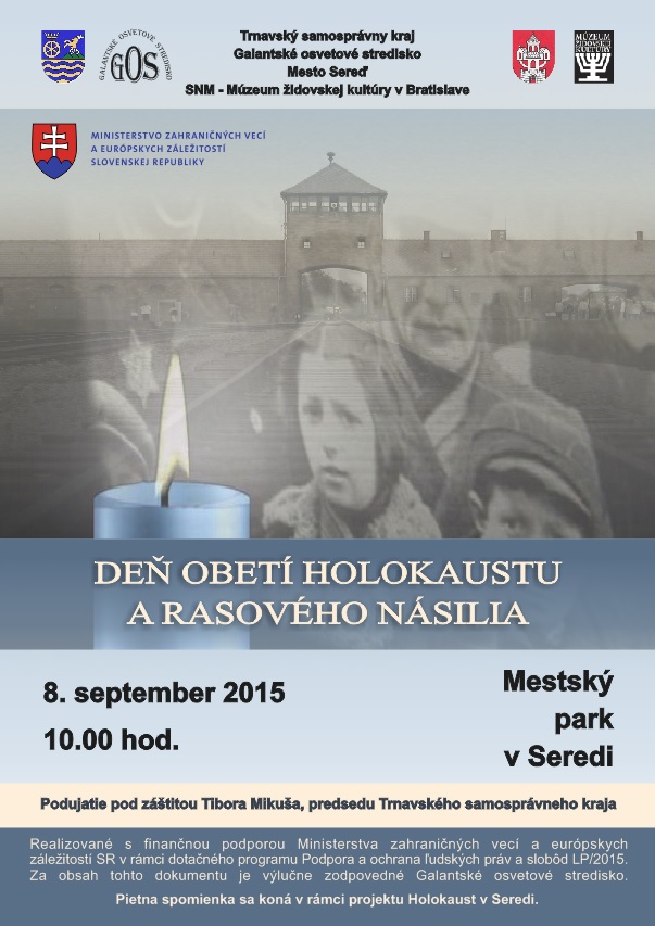 Podujatie Deň obetí holokaustu a rasového násilia sa konalo v rámci projektu Holokaust v Seredi a bolo realizované s finančnou podporou Ministerstva zahraničných vecí a európskych záležitostí SR z dotačného programu Podpora a ochrana ľudských práv a slobôd.