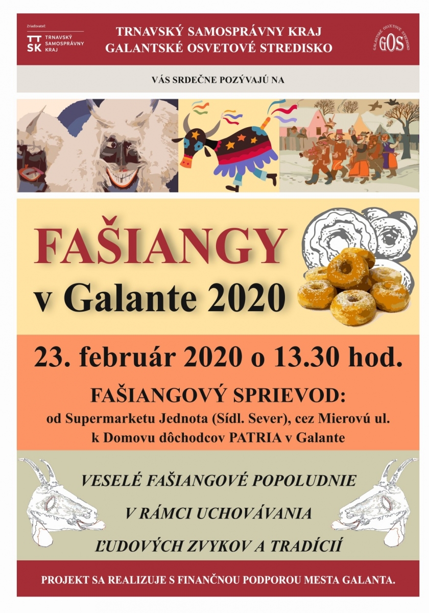 Galantské osvetové stredisko, ktoré je v zriaďovateľskej pôsobnosti Trnavského samosprávneho kraja, uskutočnlo dňa 23. februára 2020 veselé fašiangové podujatie pod názvom Fašiangy v Galante.