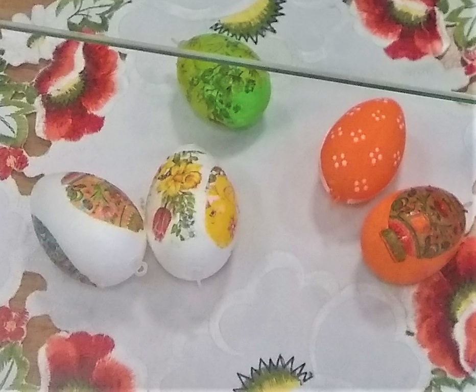 Virtuálna prehiadka prezentuje rôzne spôsoby dekorácie kraslíc – maľovaním, drôtovaním, háčkovaním, stužkovaním. Skúste si aj vy doma vytvoriť zaujímavé kraslice a nezabudnite do tejto tradičnej remeselnej činnosti zapojiť aj svoje deti. Je len na vás akú techniku si zvolíte, hlavné je, že sa spoločne vo svojich rodinách potešíte pri tejto kreatívnej aktivite. Inšpirovať sa môžete aj vytvorenými ikebanami.
