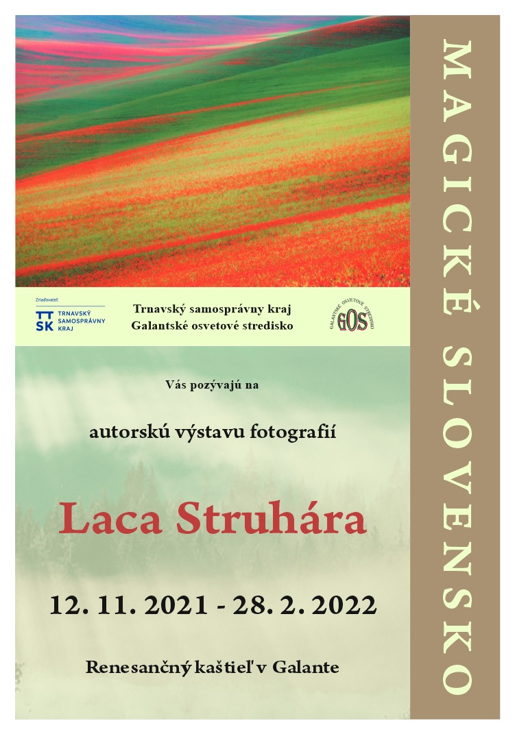 Srdečne pozývame všetkých priaznivcov umeleckej fotografie a obdivovateľov krás Slovenska na výstavnú prehliadku výberu z tvorby fotografa Laca Struhára.