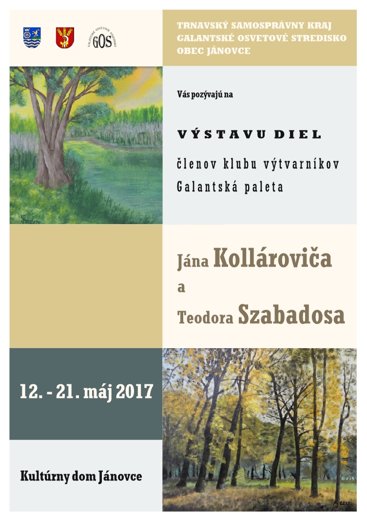 V Kultúrnom dome v Jánovciach sa v dňoch 12. až 21. mája 2017 uskutočnila výstavná prezentácia diel Jána Kollároviča a Teodora Szabadosa, členov Klubu výtvarníkov Galantská paleta.