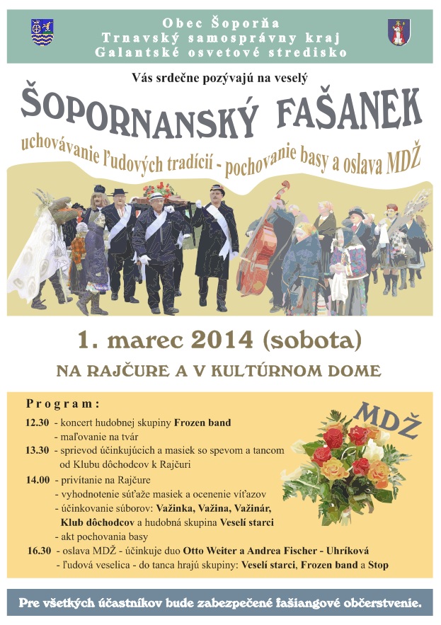 Po minuloročnom úspešnom podujatí zameranom na uchovávanie ľudových tradícií sa v  Šoporni aj v tomto roku zrealizoval program viažuci sa k tradícii konca fašiangov – pochovanie basy.