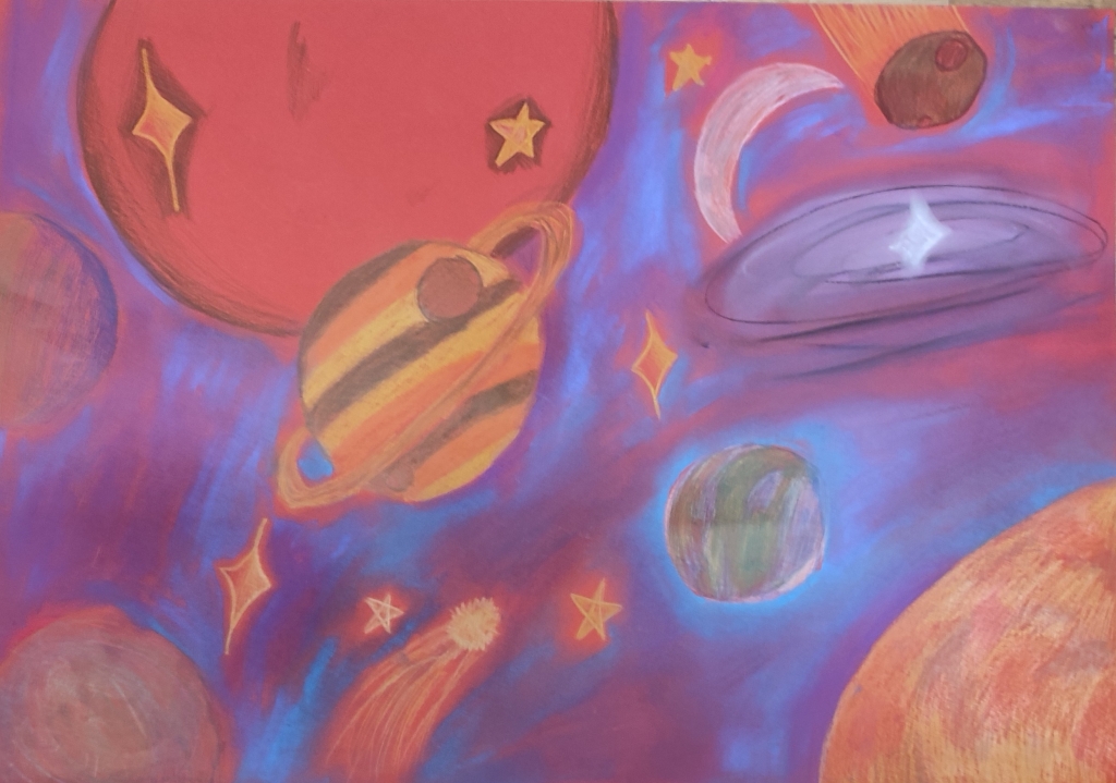 Prezentáciu výtvarných prác detí a mládeže z XXXVIII. ročníka regionálnej súťaže Vesmír očami detí 2023 pripravilo Galantské osvetové stredisko.