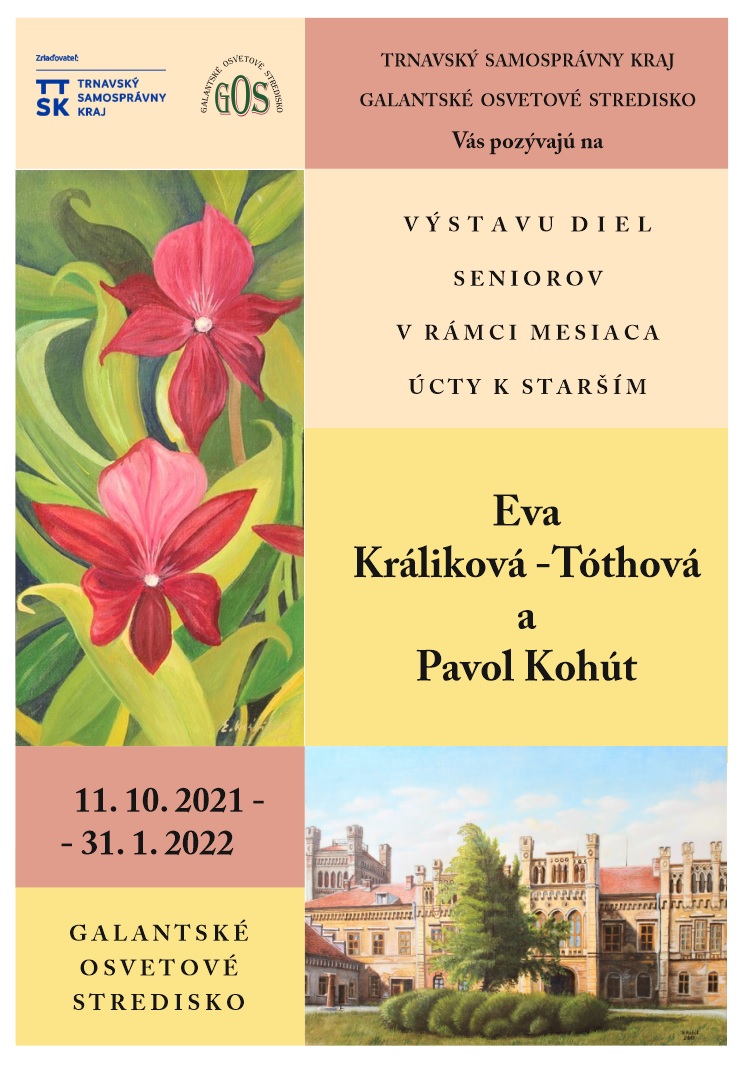 Galantské osvetové stredisko, ktoré je v zriaďovateľskej pôsobnosti Trnavského samosprávneho kraja, uskutočnilo v rámci Mesiaca úcty k starším výstavu diel Evy Králikovej – Tóthovej a Pavla Kohúta, členov Klubu výtvarníkov Galantská paleta. Výstava bola inštalovaná v priestoroch Galantského osvetového strediska a pre priaznivcov výtvarného umenia bola sprístupnená od 11. októbra 2021.
