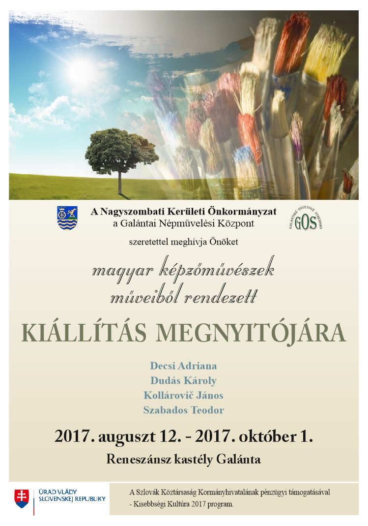 V dňoch 12. augusta - 1. októbra 2017 sa v priestoroch Renesančného kaštieľa v Galante uskutočnila výstava diel autorov maďarskej národnosti z Galantského regiónu a okolia.