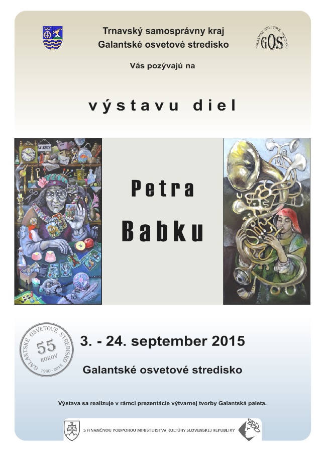 Galantské osvetové stredisko uskutočnilo v dňoch 3.-24. septembra 2015 výstavu diel Petra Babku v rámci prezentácie výtvarnej tvorby Galantská paleta.