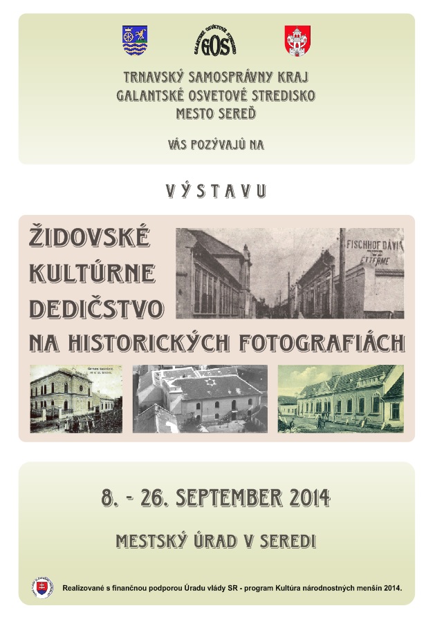 V mesiaci september sa v priestoroch Mestského úradu v Seredi konala výstava Židovské kultúrne dedičstvo na historických fotografiách.